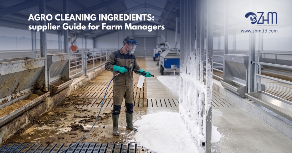 Agro cleaning ingredients are specialised chemical formulations engineered specifically for the harsh, high-load environments of commercial agriculture and livestock farming. Unlike standard household or commercial janitorial cleaners, agro cleaning products must tackle extraordinary levels of complex organic matter—including concentrated animal feces, uric acid, heavy fats, blood, feather dust, and robust bacterial biofilms.