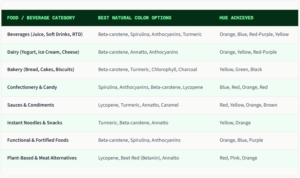The table below maps the most common natural food colors to their primary applications in Bangladesh's food & beverage industry: